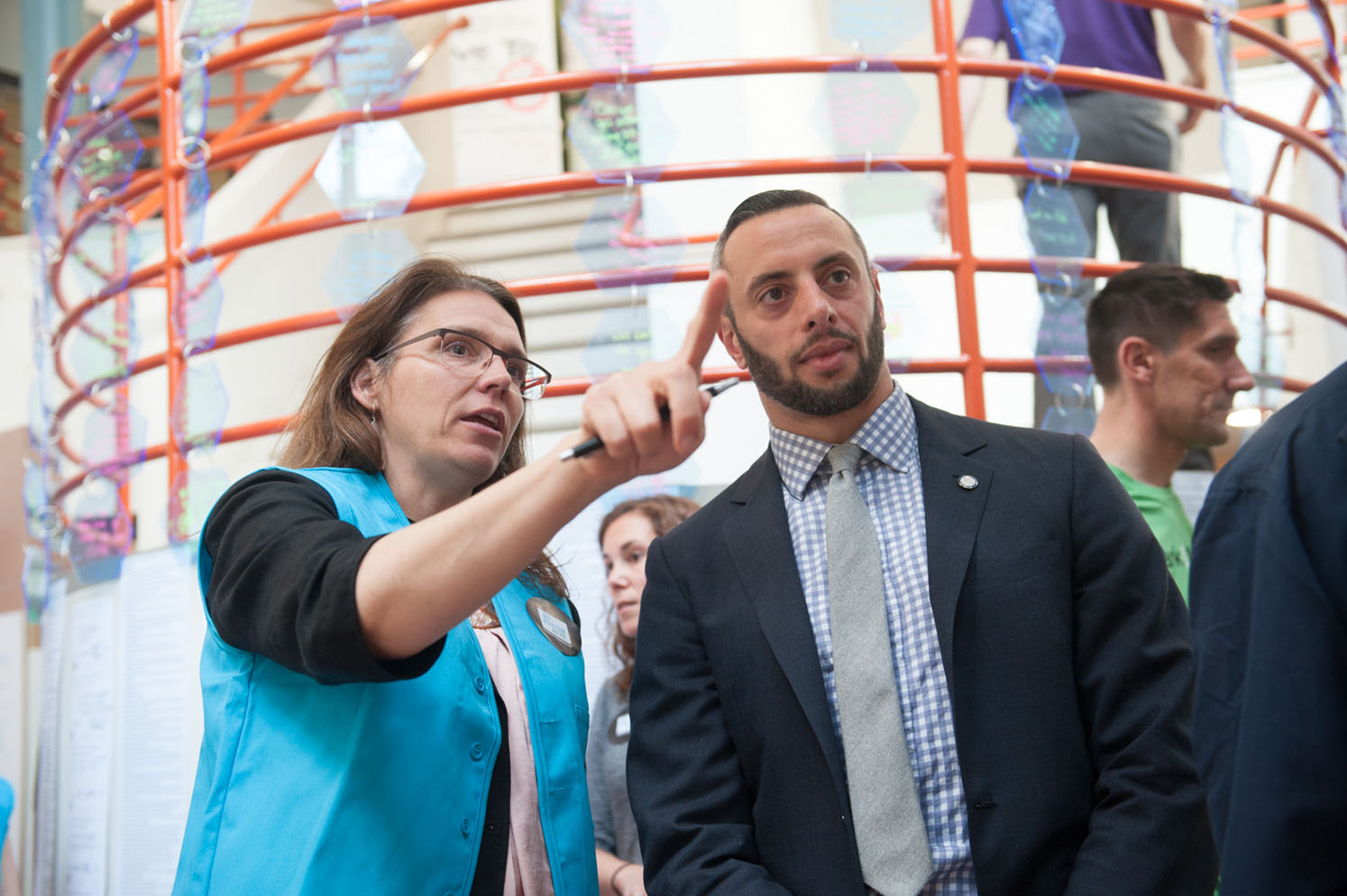 DS4SI designed the user experience from entry to exit making sure people had multiple opportunities to interact with data and people throughout the space. Data collection was designed to capture the public's visions as well as see it accumulate over time allowing for intersecting visions.