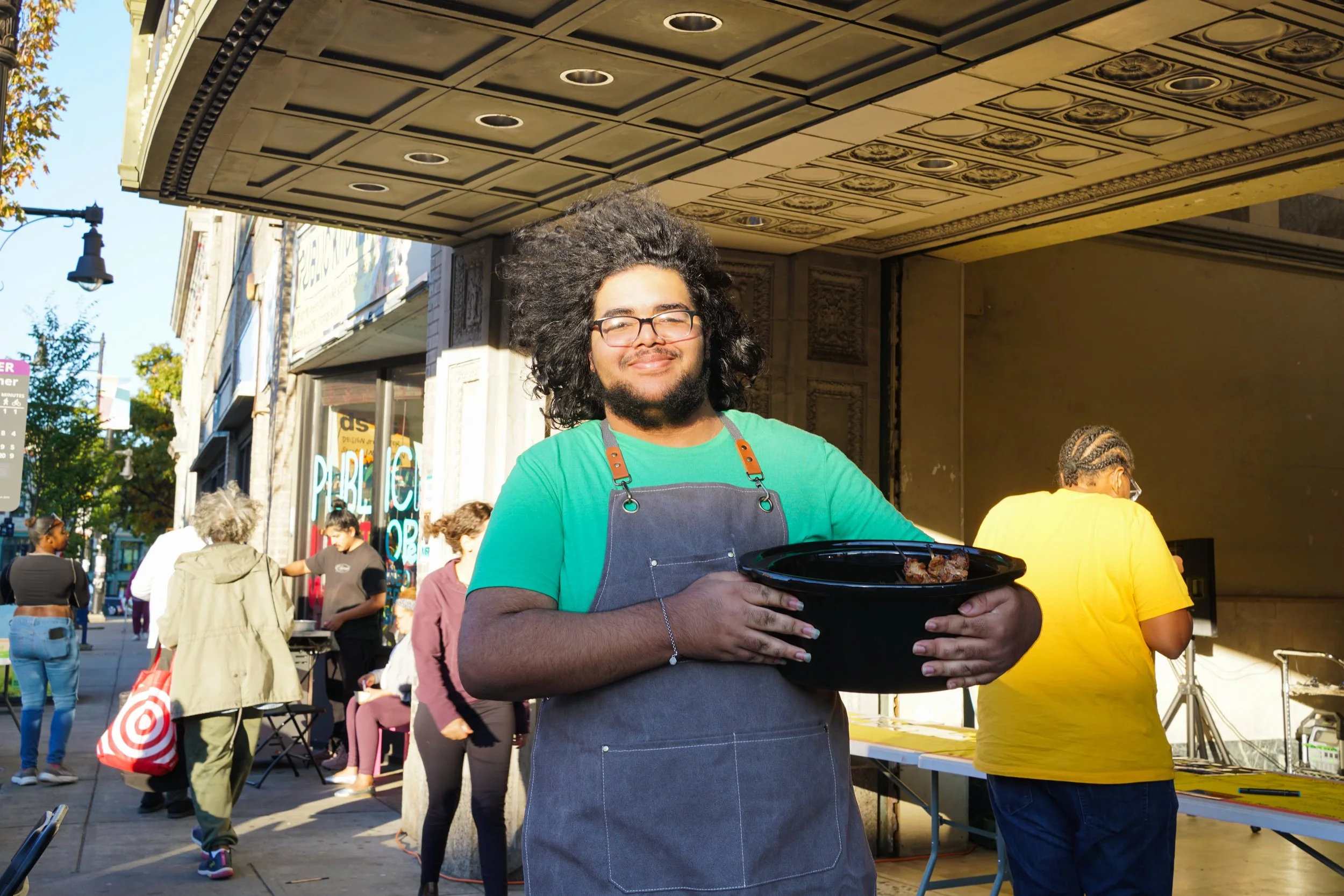 The 2024 Public Kitchen really took on a life of its own. There was planned programming and an Open Kitchen, where we invited the community to set the programming they wanted to experience. Brother Duli, the community shaman, joined us regularly and gave massages on the sidewalk. We had “Community Chop Challenges”, food poetry slams, hot sauce, and canning workshops…“decolonize your diet” discussions, grandmas making pupusas and sending over fried chicken even when they couldn’t attend, youth-led jollof rice and smoothie sessions, and so much more. PK was open on Wednesdays, Fridays, and Saturdays every week from July 19th, 2024 to October 12th, 2024, from 3-7 pm, with 35-100 people coming each day.