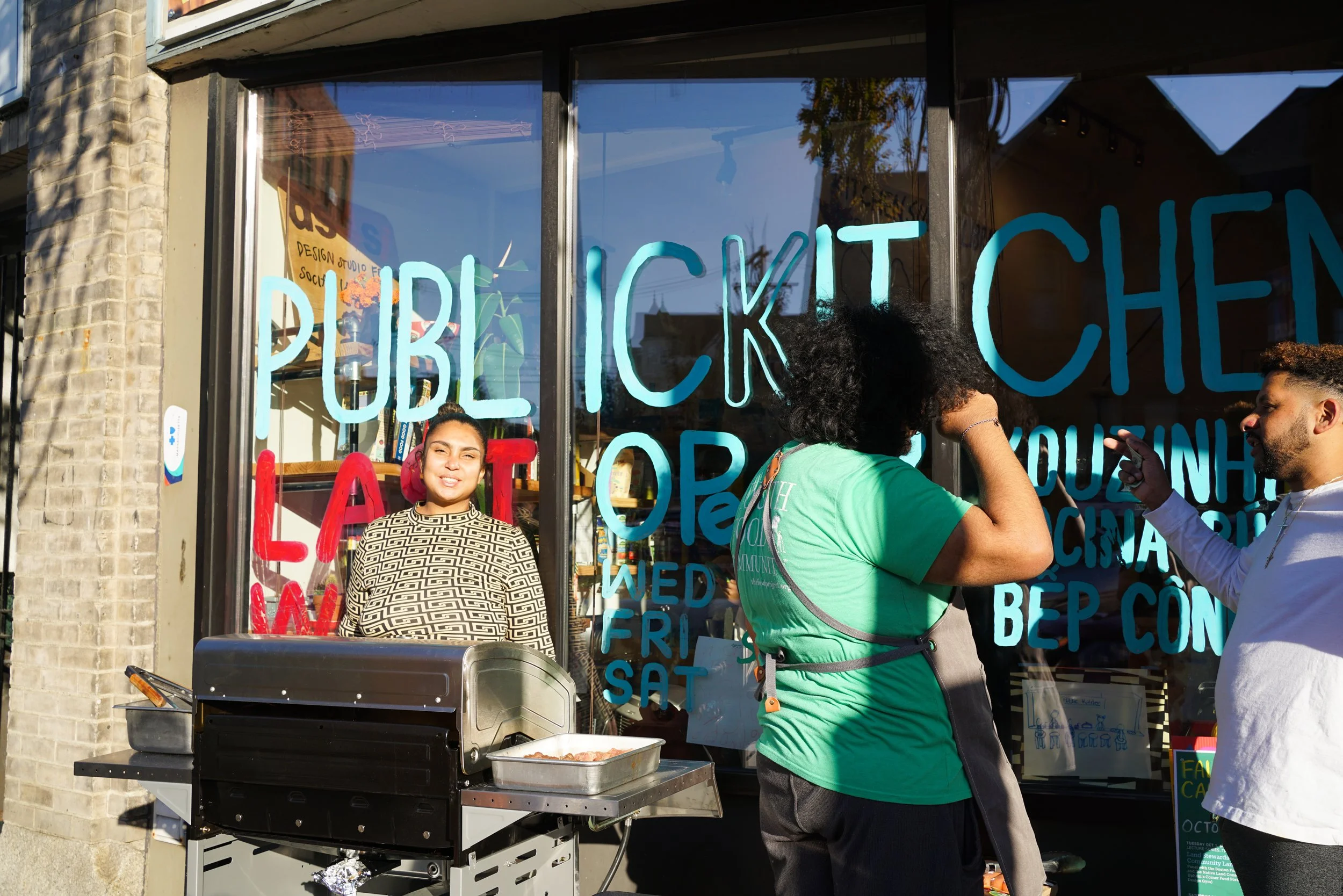 In 2024, the cohort worked together to identify chefs from various backgrounds and ethnicities to lead demonstrations and facilitate knowledge exchange, curating experiences that encouraged residents to engage and offer their own talents and skills to the PK space. Their contributions—alongside yours and our community’s—shaped what Public Kitchen became. We’re grateful for all of our activators, facilitators, chefs, neighbors, and friends, including the Dudley Greenhouse, Comfort Kitchen, Eastie Farms, Green Mountain Girls Farm, and a special Thanks to Carmen Powell for rescuing much of the food we cooked at Public Kitchen. This was truly a beautiful example of collaborative community design.