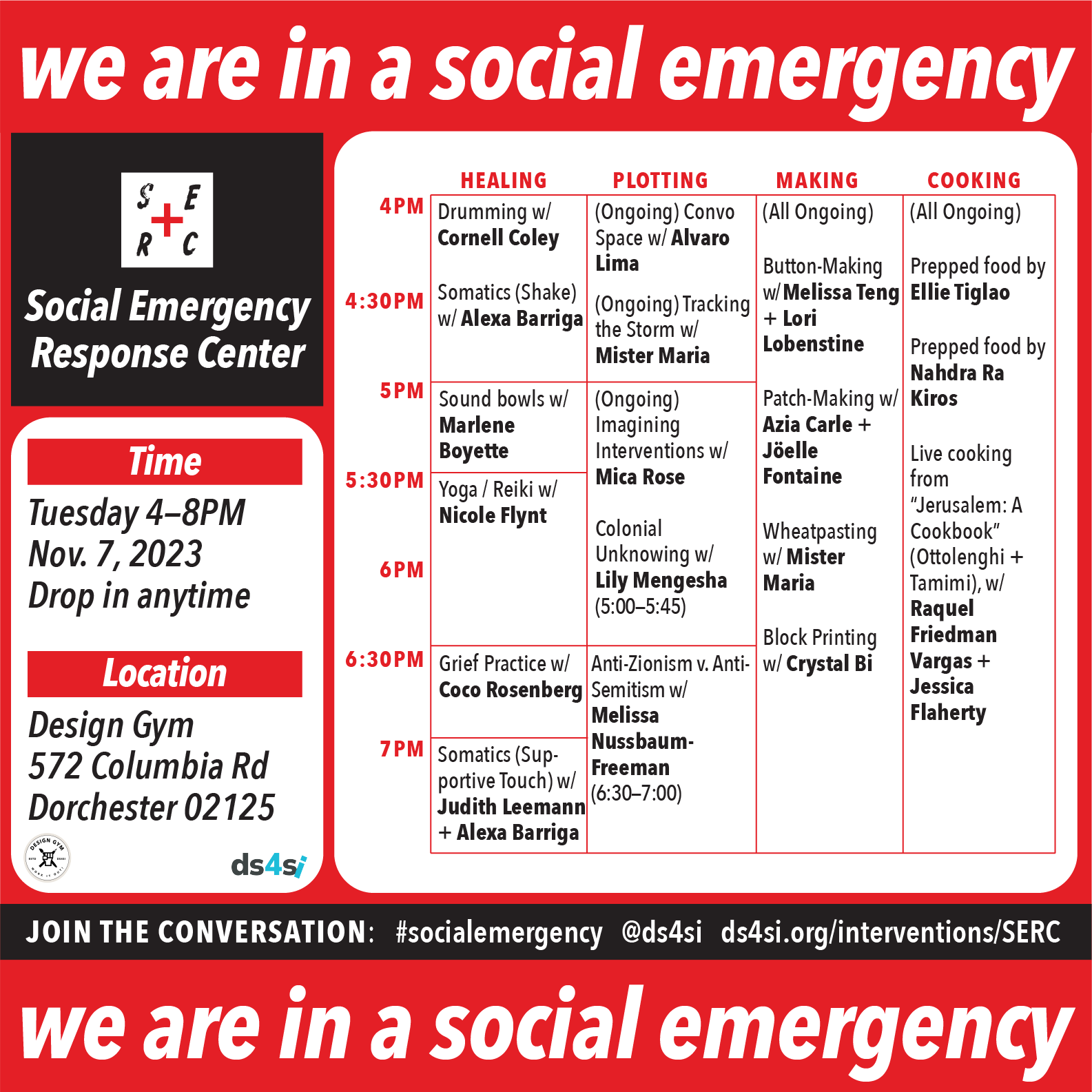 Yup, it's that simple. The more we can raise, the more SERCs we can support. If you can help with a small or large donation, that would be fantastic. Individuals can send financial support through our fiscal sponsor here. (Make sure to designate Design Studio for Social Intervention.) If you want to support us through a grant (or recommend one), please contact us through serc@ds4si.org.